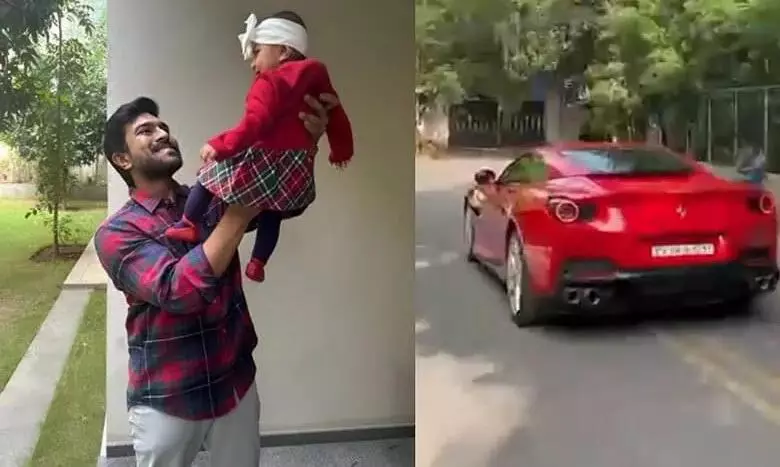 A video of Ram Charan driving his red Ferrari Portofino through Jubilee Hills is now all over social media. What caught attention was that his daughter was sitting beside him in the car. The sleek Ferrari, worth around Rs 3.5 crore, turned heads, but it was the father-daughter moment that stole hearts.