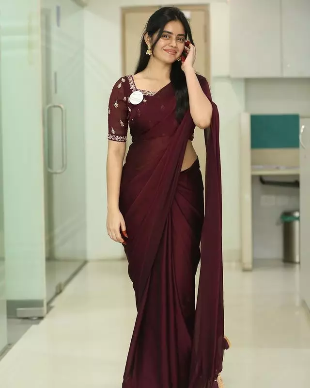 Kushita Kallapu, born on October 19, 2002, in Hyderabad, Telangana, India, has recently captivated her fans with her stunning appearance in Instagram in red wine saree.