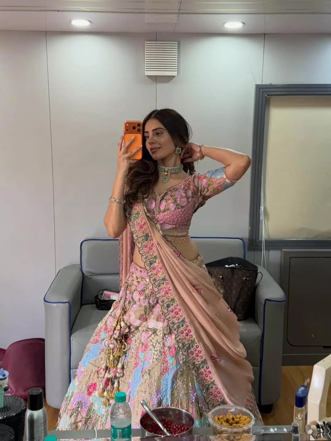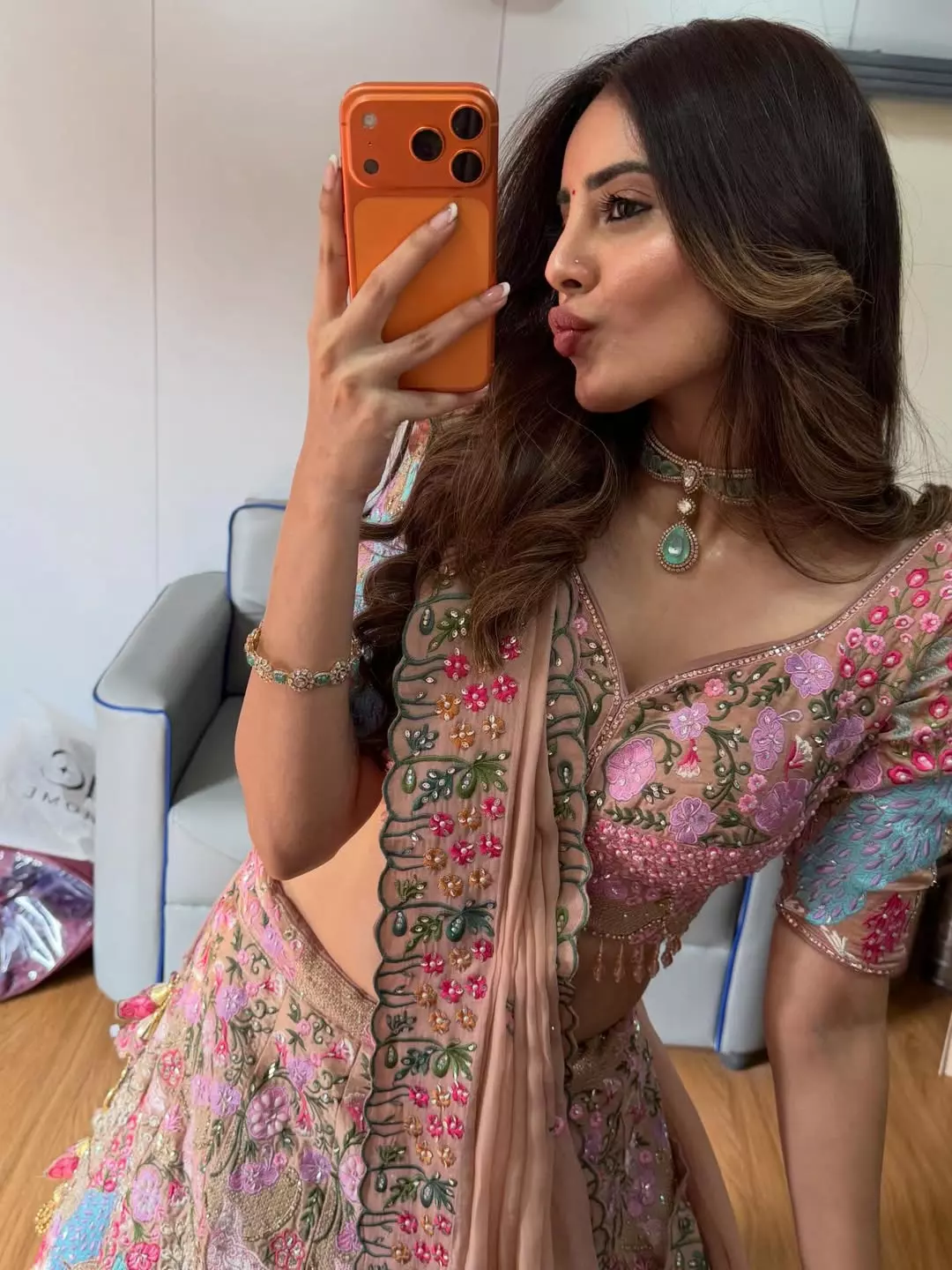 She clicked in a variety of looks from purple to yellow, many sarees, but the same glam with open hair and cute bindi she shared behind the scenes from the photoshoot, where it is heavy for her to carry the lehenga, and still she made the shoot look stunning.