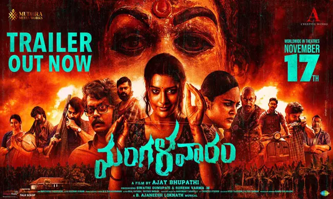 By: Tupaki Desk | 21 Oct 2023 12:29 PM ISTDirector Ajay Bhupathi's 'Mangalavaaram', the village-based action-thriller set in deeply dangerous times, will arrive at the cinemas on November 17. Ajay Bhupathi and the makers Swathi Gunupati and Suresh Varma M are aiming to release the movie in Telugu, Hindi, Tamil, Kannada, and Malayalam under Mudhra Media Works and A Creative Works.