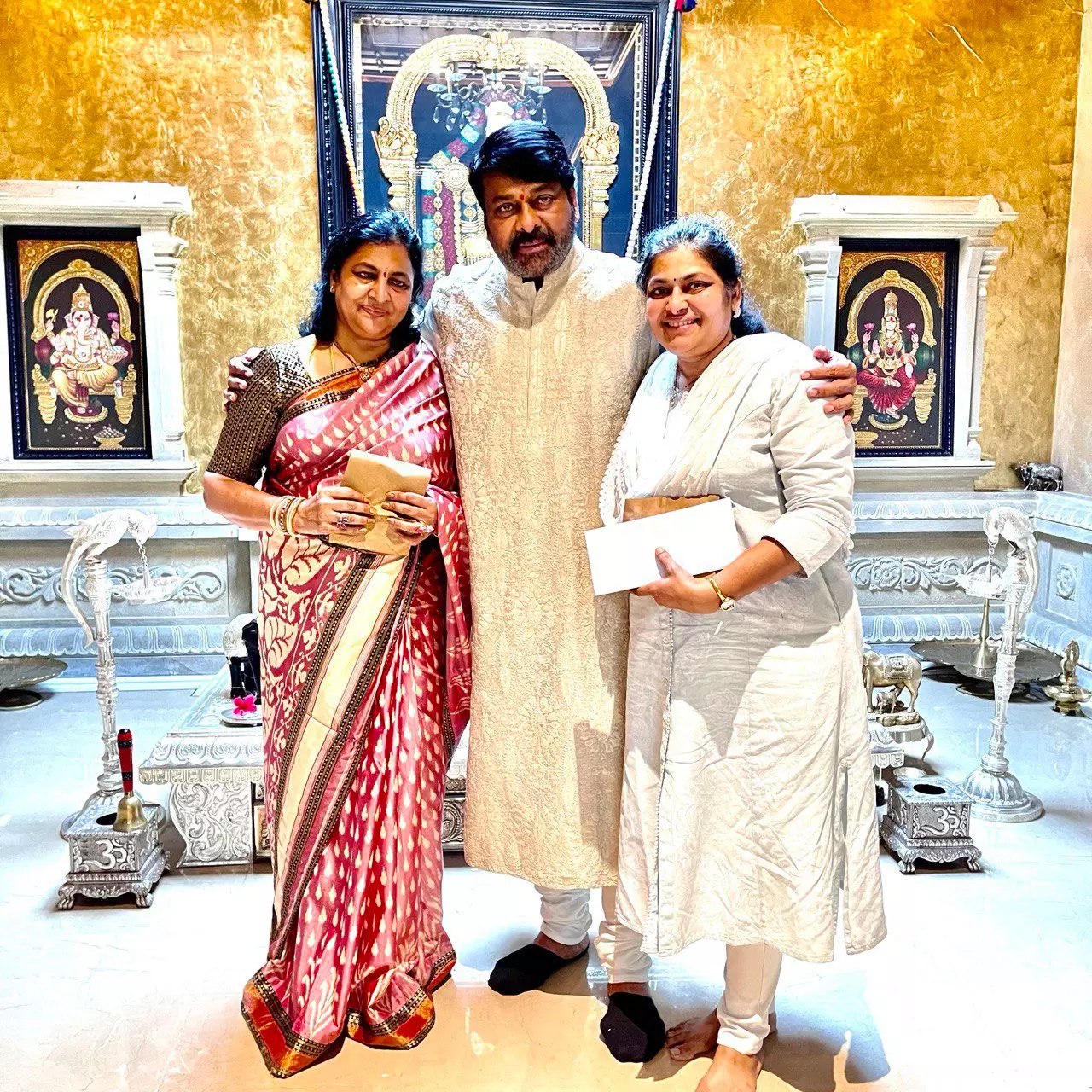 On Instagram, he posted a video where his two sisters are tying him Rakhi in front of all the pooja mandir. Chiranjeevi is seen blessing them and he shared a few pictures as well. Chiranjeevi is looking very classy in a kurta and it is nice to see Megastar being joyous whilst spending quality time with his family.