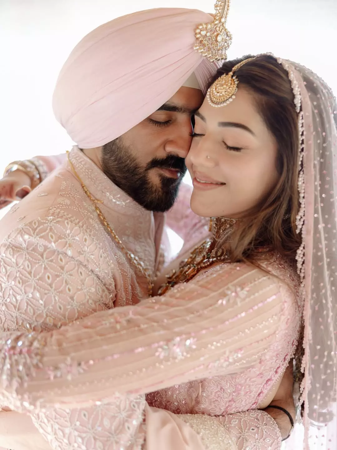 By: Priya Chowdhary Nuthalapti | 27 April 2026 12:16 AM ISTActress Mehreen Pirzada has surprised everyone with her latest social media post. The picture shared by her is of a beautiful wedding moment. In the photo, Mehreen is seen wearing a soft pink bridal dress with traditional jewelry. She got married to Arsh Aulakh and he is dressed in matching attire. Both look very close and happy.