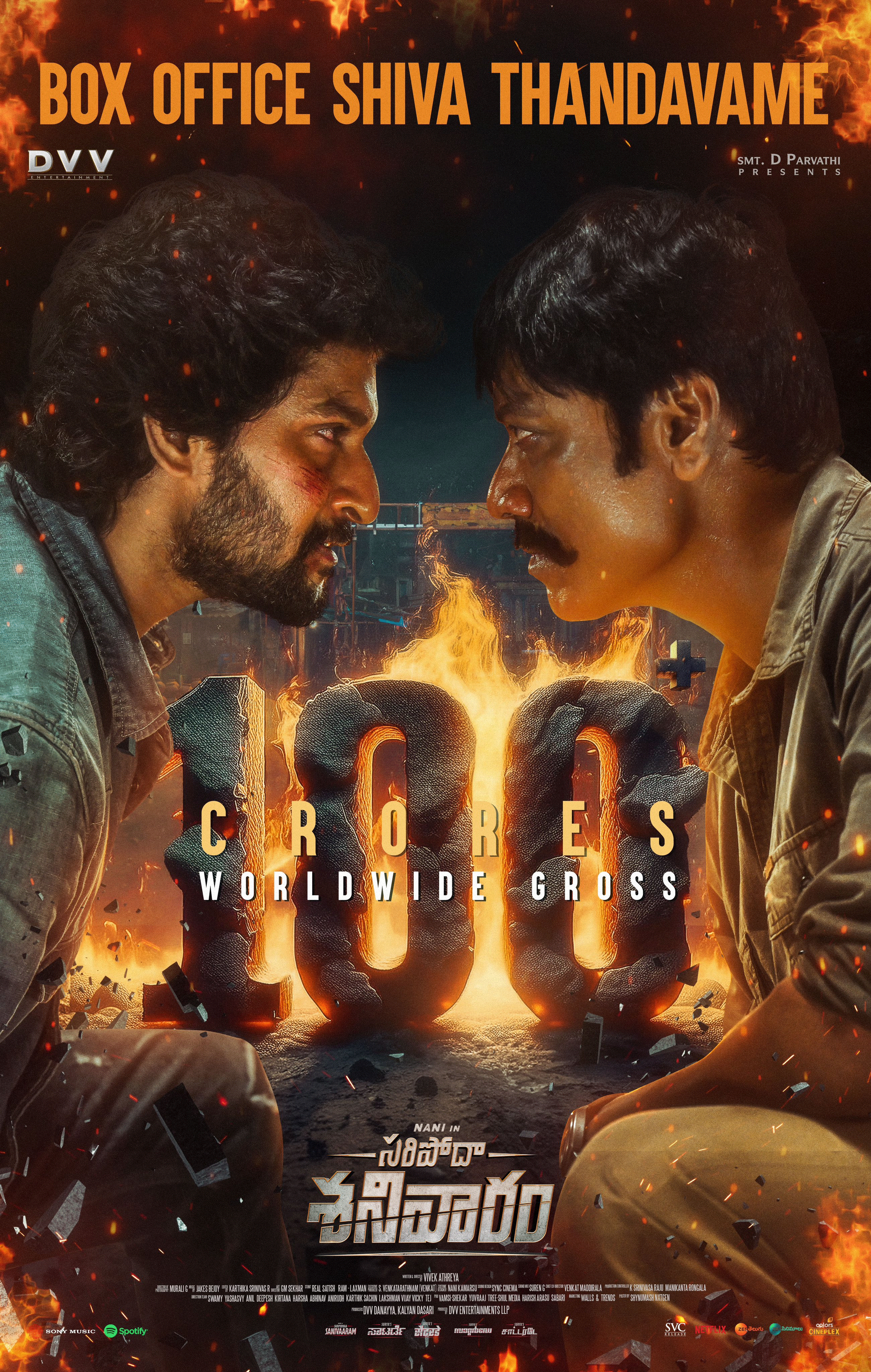 By: Tupaki Desk | 16 Sept 2024 9:11 AM ISTNatural Star Nani's latest film Saripodhaa Sanivaaram, an action-packed family entertainer, has made an impressive mark at the box office. Directed by Vivek Athreya and produced by DVV Entertainment, the movie has crossed the 100-crore mark worldwide, showcasing its huge popularity. The film continues to perform exceptionally well, even in its third weekend, proving its staying power in cinemas.