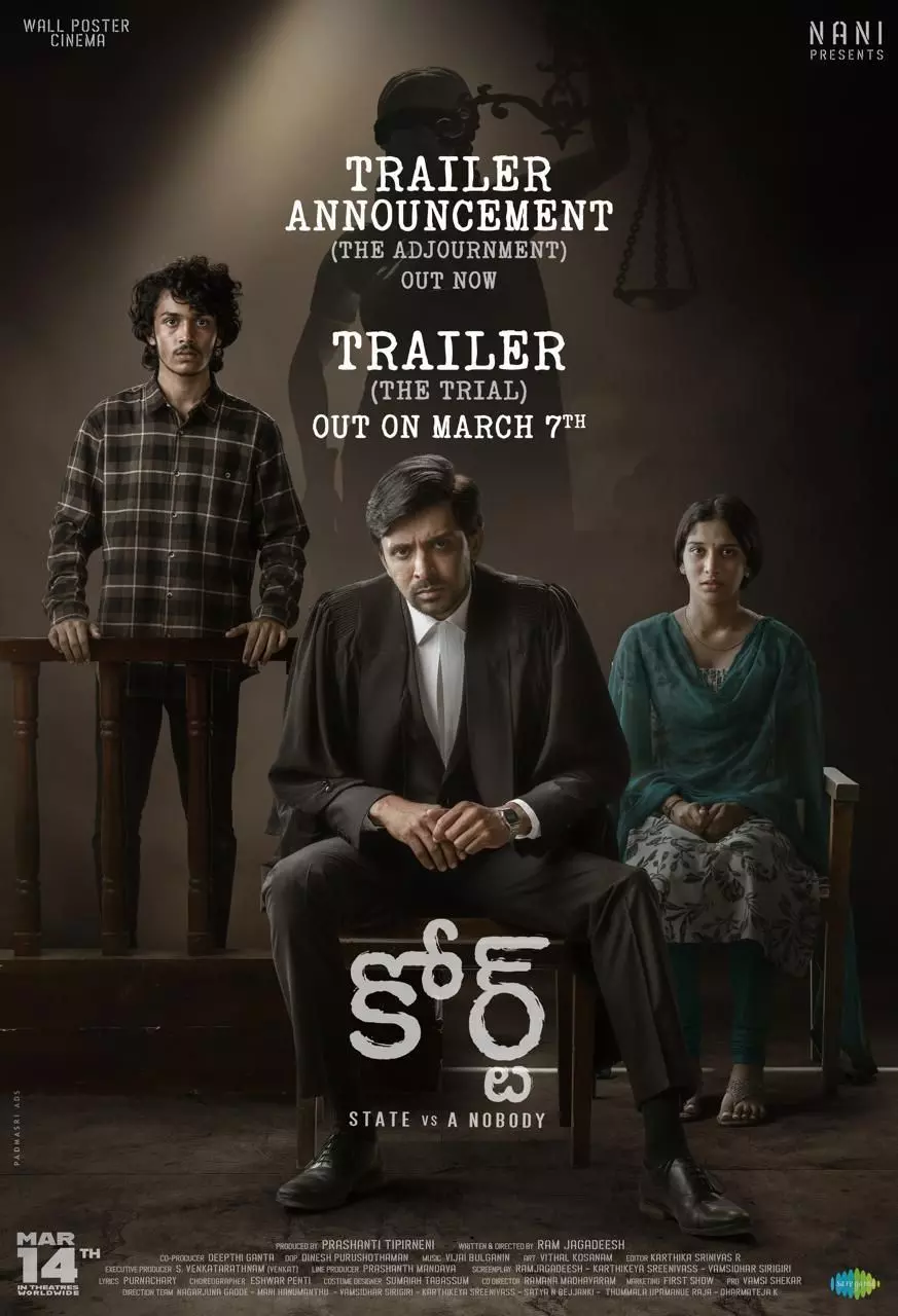 By: Tupaki Desk | 1 March 2025 7:19 PM ISTCourt movie starring Priyadarshi, Harsh Roshan, Sridevi and many senior actors has impressed everyone with teaser and promotional material. Natural Nani is presenting the film and he highly praised the movie and remarked that the performances are the pillar of this movie. Now, the makers have announced the highly awaited trailer release date for the film with a small glimpse, The Adjourment.
