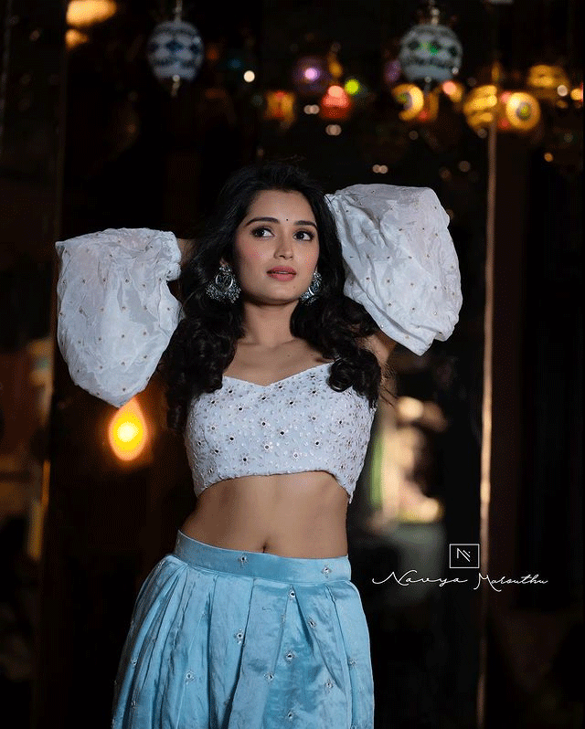 Sharing some stunning photos on social media, Priyanka recently mesmerized her fans with her elegant and graceful attire. Styled by Navya Marouthu, she wore a white embroidery crop top paired with a blue skirt, complemented by stylish accessories and impeccable makeup by Bridal Makeup By Sujatha. The captivating shots were captured by photriya venky at Hyderabad film studios.