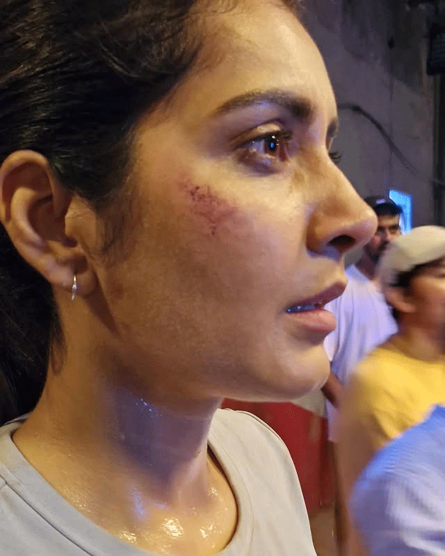 By: Tupaki Desk | 20 May 2025 1:59 PM ISTNo warning, no preamble Raashi Khanna dropped a stunner straight from her latest work grind. Clad in a simple white tee and black pants, her face marked with bruises and blood dripping from her nose, the photo wasn’t your usual behind-the-scenes fluff. Her caption hit just as hard: “Some roles don’t ask. They demand. Your body. Your breath. Your bruises. And when you become the storm, you don’t flinch at the thunder.⚡️ Coming soon…” Whether it was part of a shoot or a real injury, she left fans guessing and worrying.