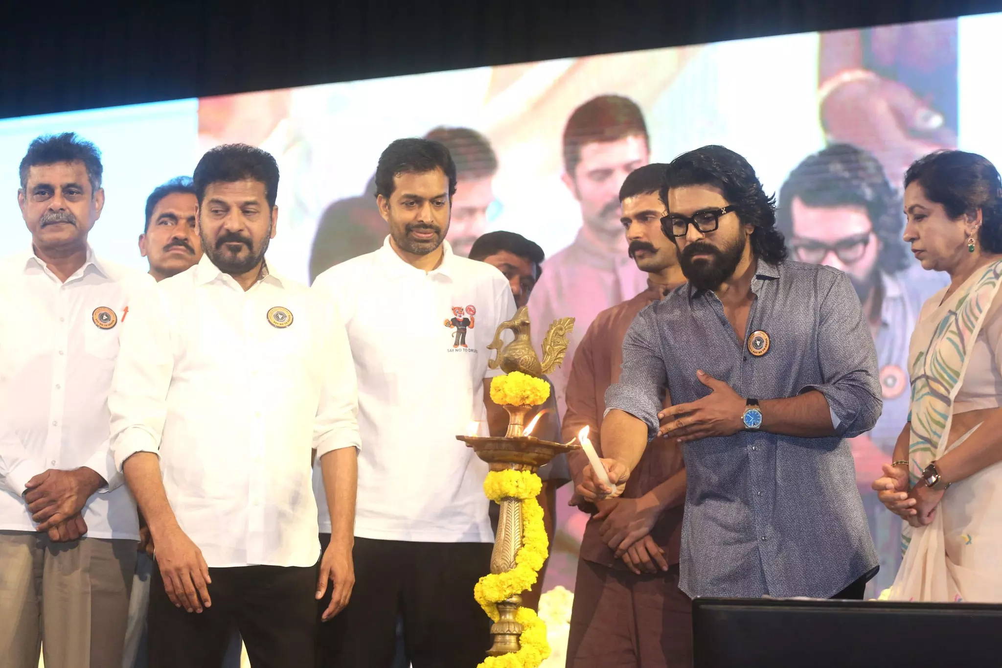 By: Tupaki Desk | 26 Jun 2025 7:20 PM ISTGlobal Star Ram Charan attended as Special Guest to Telangana Government's International Day Against Drug Abuse and Illicit Trafficking event. Ministers, MPs, Vijay Deverakonda and several Police officials have attended the event as Guests with Telangana CM Revanth Reddy as Chief Guest.