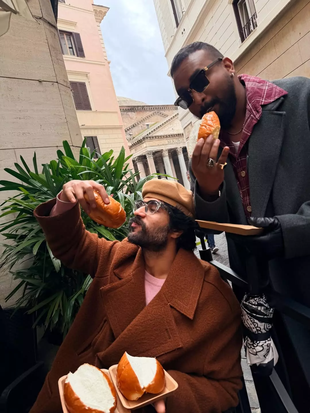 Another photo shared by Vijay Deverakonda created even more buzz. In this picture, Vijay is seen holding a cream bun and saying cheers. Interestingly, he appears to be cheering with someone beside him. Fans strongly believe that the person next to him is Rashmika Mandanna. The reason is simple: the hand seen in Vijay’s photo, along with the dress colour and design, perfectly matches the dress Rashmika wore in her own photos from the trip. This small detail became a big talking point among fans.