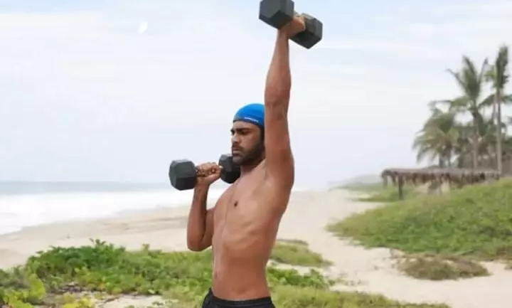 In the pictures, Sharwanand is seen doing intense workouts with dumbbells near a beach location. He is performing several exercises like shoulder presses, lunges and arm curls. The actor looks completely focused while training hard under a small beach shelter. These photos clearly show how seriously he prepared for his role in the film.