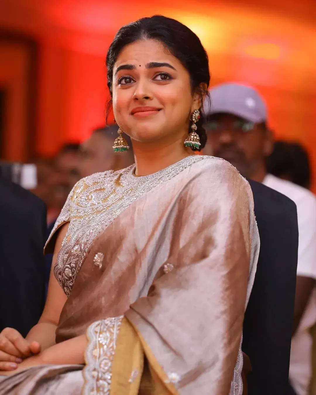 Seen in a stunning saree paired with a designer high neck blouse and sporting a bun hairstyle, she exudes elegance.