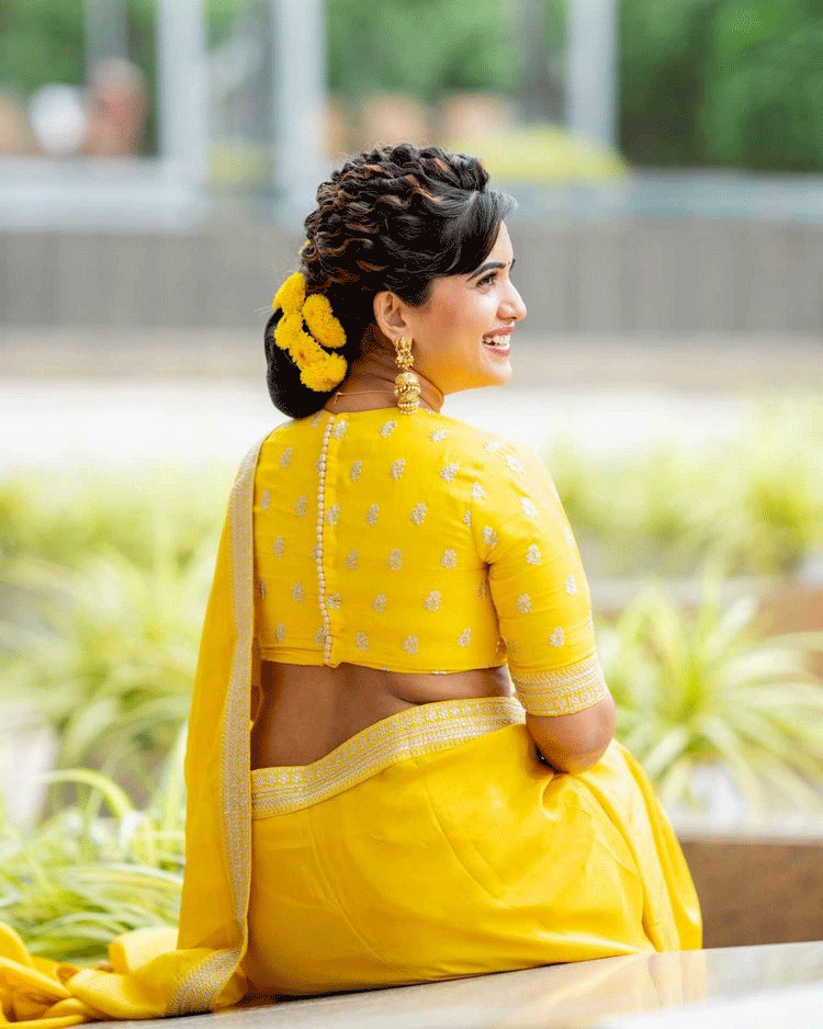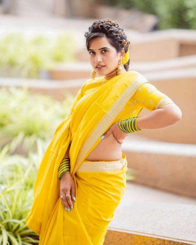 Recently, Sravanthi treated her fans to a stunning series of photos from a photoshoot, and they were nothing short of mesmerizing. Clad in a radiant yellow saree paired with a high-neck blouse, adorned with a bun hairstyle and flowers delicately placed on her head, Sravanthi exuded elegance and charm. Her infectious smile only added to the allure of the stylish stills, leaving her fans enamored and eagerly anticipating her next glamorous appearance.