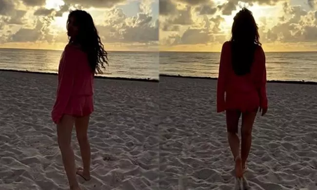 By: Tupaki Desk | 10 July 2025 11:59 AM ISTTollywood beauty Sreeleela walking along the beach like it’s the most natural thing. The sky behind her, caught somewhere between sunrise and sunset, adds mood without trying too hard. There’s no music or filters in the air, just wind, water, and her steady steps.