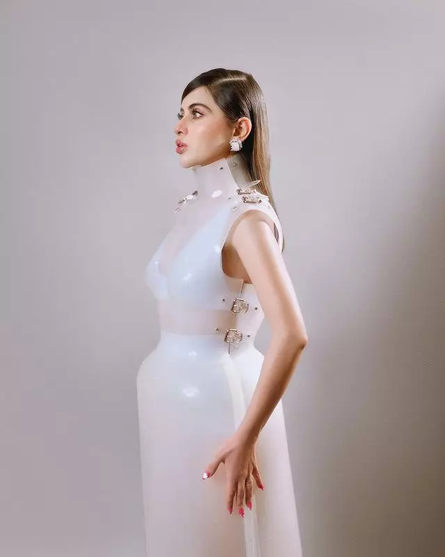 By: Tupaki Desk | 13 April 2024 11:29 AM ISTUrofi Javed, formerly known as Urfi Javed, is creating quite a buzz with her recent pictures that have her fans going gaga. Sporting a unique look like never before, she's seen in a stunning white plastic high-neck bodycon dress that's turning heads.