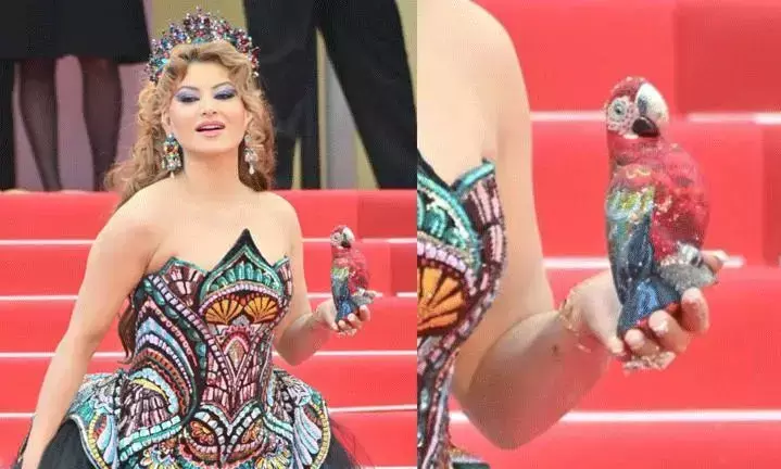 On May 13, Urvashi walked the Cannes red carpet in a blue and black gown. But what really caught attention was her clutch � a quirky parrot-shaped one that�s said to cost around Rs 4 lakh. It didn�t take long for pictures to flood social media.