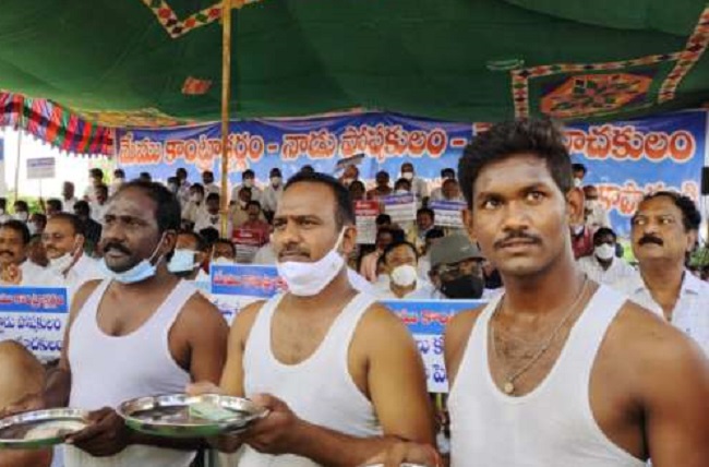 The protesting contractors held banners and posters that said that from patrons, they were now reduced to being beggars. They demanded early clearance of the bills. Their bills remain pending ever since the YSRCP came to power. As a result, most contractors are now refusing to take up any new work in Andhra Pradesh. The ire of many contractors is that the YSRCP government has stopped payments as it feels that most of the contractors were TDP sympathisers and requested it to release the funds as it was the government's obligation to pay the contractors.