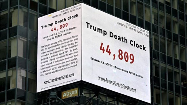 The Filmmaker named the billboard as "Trump Death Clock" and he set up the billboard to indicate that the United States President Donald Trump responded lately on the COVID-19 pandemic and the US has to pay a big price for this.