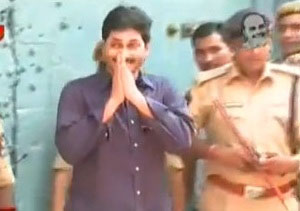 After a long time, YSR Congress party president YS Jagan Mohan Reddy appeared before public today, and waved to fans. With CBI Court ordering to bring Jagan to Court today on Prisoner Transit warrant, police made arrangements to present him in Nampally court.