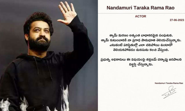 Now none other than Young Tiger NTR reacted to the issue and released a note. In the note, NTR said that Shyam's death is the saddest incident and extended his condolences to the family. The Nandamuri scion also opined that not knowing the circumstances in which Shyam died is painful and requested the officials to launch a probe into this.