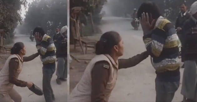 Kanpur Police Woman Thrashes Man For Eve-Teasing School Girls