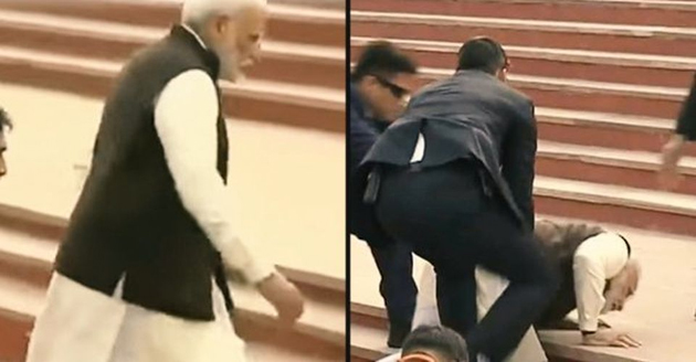 Upon completing the boat ride, Narendra Modi fell down while climbing the stairs of Atal Ghat. PM missed a small step and that led to his fall on the stairs. Immediately, Security Personnel helped him to stand on his feet.
