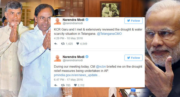Recently, Prime Minister Narendra Modi offered his appointment to Chief Ministers of Telugu States allowing them to give a presentation on the drought situation in AP & Telangana. Post the meetings, Modi who is known to tech-savy PM shared the news on his Twitter page.