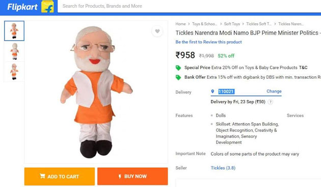 Flipkart is selling Narendra Modi's 15-inch Toy for Rs 958. The features include instilling creativity, object recognition, imagination sensory development and improves concentration among kids.