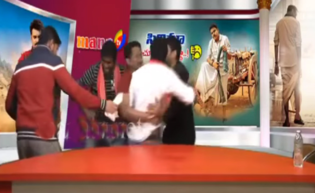 Fans who took part in the discussion created a scene by throwing chairs and bottles over the low rating for 'Katamarayudu'. Now, This video clip has gone viral on the internet.