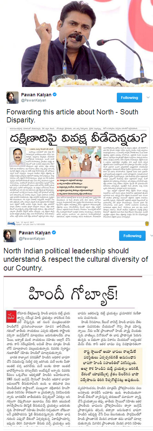 By: Tupaki Desk | 23 April 2017 5:25 PM ISTOnce again, Pawan Kalyan blamed North Indian Rulers for not respecting the cultural diversity of our Country. He pointed out the consequences of focusing the people across the Nation to accept Hindi as their official language.