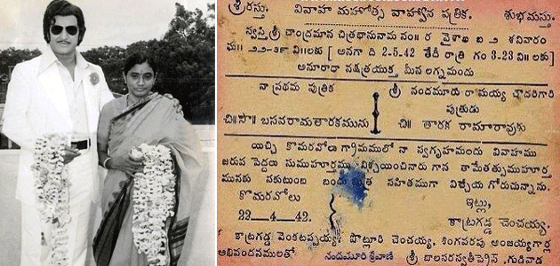 By: Tupaki Desk | 21 Nov 2013 4:48 PM ISTHere is the exclusive wedding invitation of Telugus Pride late NT Rama Rao. Apparently, NTR tied the nuptial knot with Basavarama Tarakamu