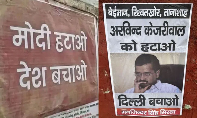'Modi hatao desh bachao', reads the posters targeting Prime Minister Narendra Modi. To hit back, the Bharatiya Janata Party set up posters saying that Chief Minister Arvind Kejriwal should be defeated to save Delhi.