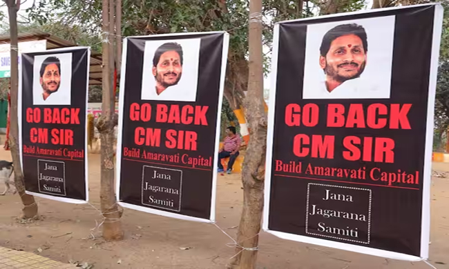 Amid this, posters spotted in Vizag came as a big blow to the YSRCP. The posters urge CM Jagan to go back and build Amaravati as the capital. The posters are set up in the name of Jana Jagarana Samithi, which is fighting for the demands and rights of the state.