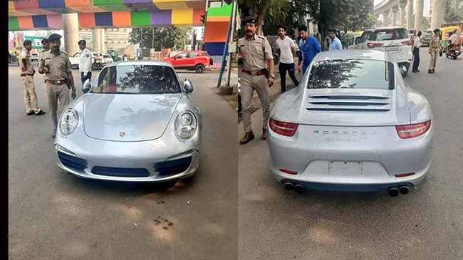 Owner of the Porshe car 911, worth 2 crore, paid a fine of 27.68 lakhs for violating the rules, which is the highest fine in India. The car was stopped at Vajra, Helmet crossroads on November 28, the car did not have the number plate. The traffic police officials questioned him and the owner of the Porshe car failed to produce the valid documents. The car was detained and police officials issued a memo under Motor vehicles act.