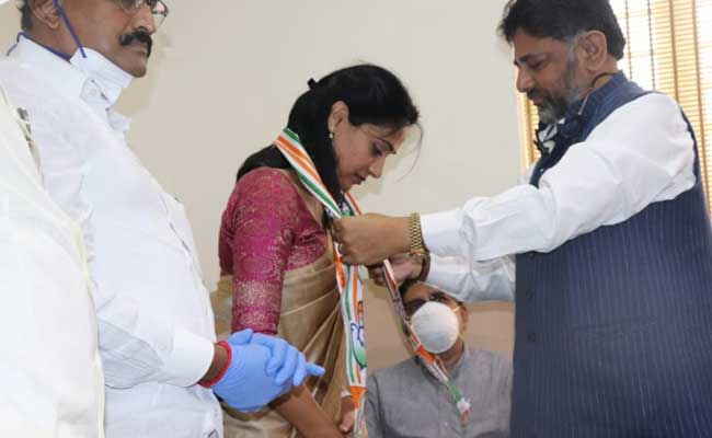 She wore the party shawl in the presence of DK Shivakumar, Karnataka Pradesh Congress Committee President on Sunday.