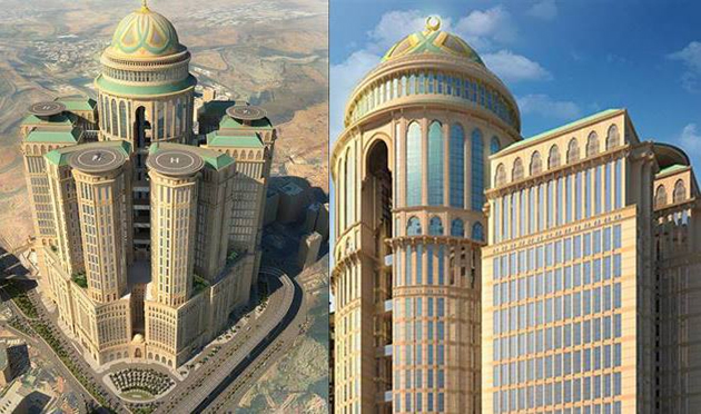 Abraj Kudai, a Hotel in Mecca (Saudi Arabia), consists of altogether 12 Towers and each of them are 45-storeys high. Dar Al-Handasah Group has designed giant structure. It will have 70 restaurants, 10,000 bedrooms and 5 rooftop helipads. While 10 Towers will provide 4-Star Accommodations, Two Towers is for 5-Star Accommodations. Saudi Royal Family will occupy about 5 Floors of Abraj Kudai.