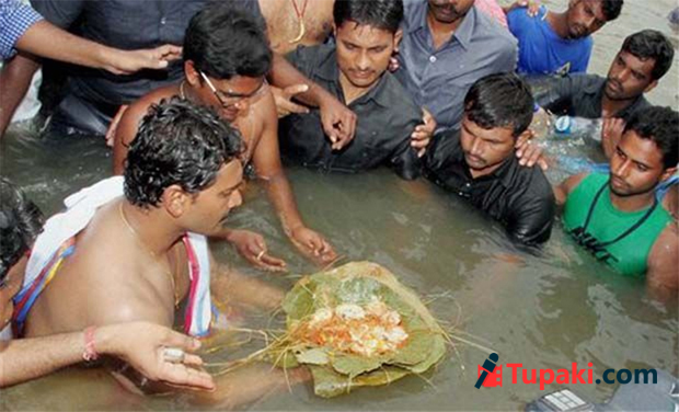 By: Tupaki Desk | 16 July 2015 8:04 PM ISTYSRCP chief and opposition leader YS Jagan Mohan Reddy on Wednesday performed Pinda Pradanam (afterlife ritual for the departed ancestors) at Godavari Ghat in Kovvur of West Godavari district.
