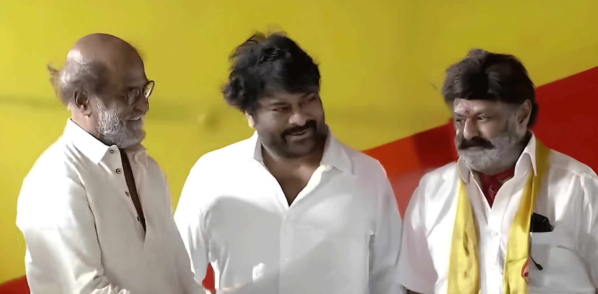 Not finding a place in the cabinet did not stop Nandamuri Balakrishna from becoming the centre of attraction. The actor-politician had a special moment with Megastar Chiranjeevi. Balakrishna warmly welcomed Chiranjeevi. They had a warm shakehand on the stage.