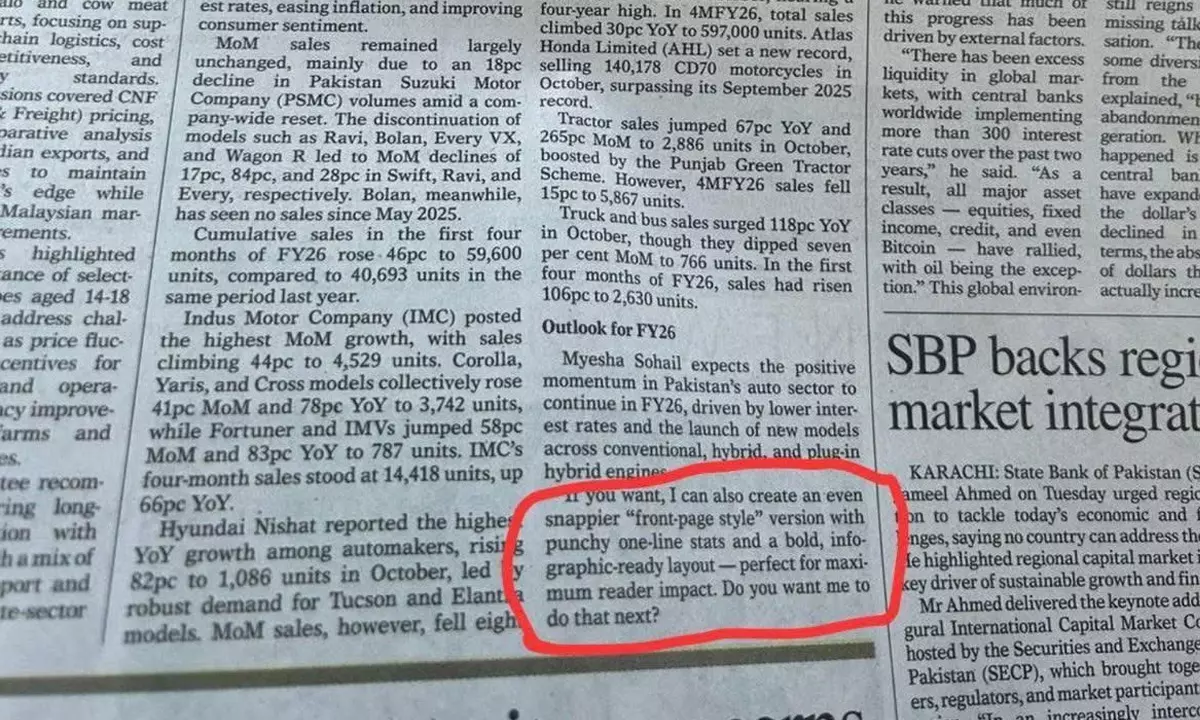 By: Tupaki Desk | 14 Nov 2025 11:48 AM ISTThe ever increasing revolution of the artificial intelligence model is unstoppable at this point in time. And now it has reached a point where AI is being used to write even newspaper articles and here is a look into the story behind a Pakistan newspaper, which has become a laughing stock.