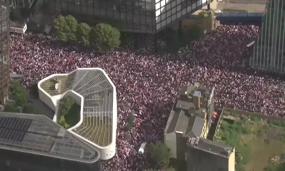 Protesters carried national flags, chanted slogans, and demanded stricter immigration controls. Their main concern was that the rising number of immigrants was putting pressure on housing, jobs, and public services in the UK.