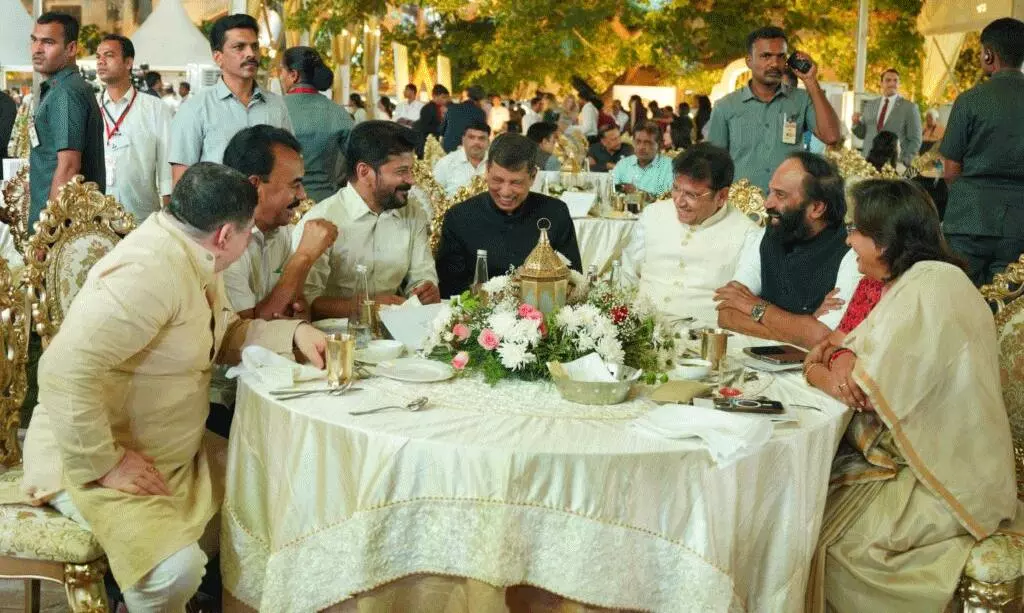 Last night, the government organised a lavish dinner party for the Miss World organisers and contestants at the iconic Chowmahalla Palace in the Old City. The dinner party witnessed the attendance of CM Revanth Reddy, several cabinet ministers, actor Nagarjuna, producers Allu Aravind, Suresh Babu and many others. The pictures of this dinner party are now spreading virally on social media.