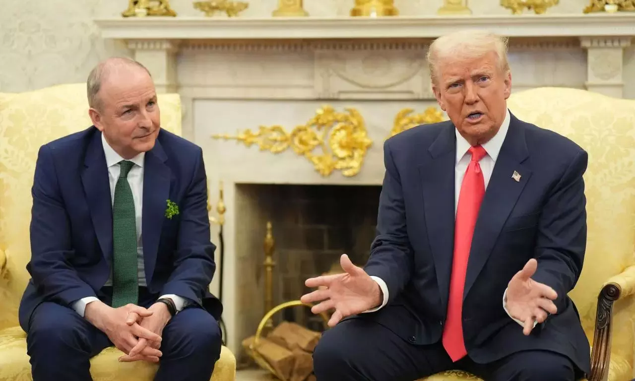 This incident occurred during a meeting with Irish Prime Minister Michael Martin, who was there for the St. Patrick's Day celebrations.