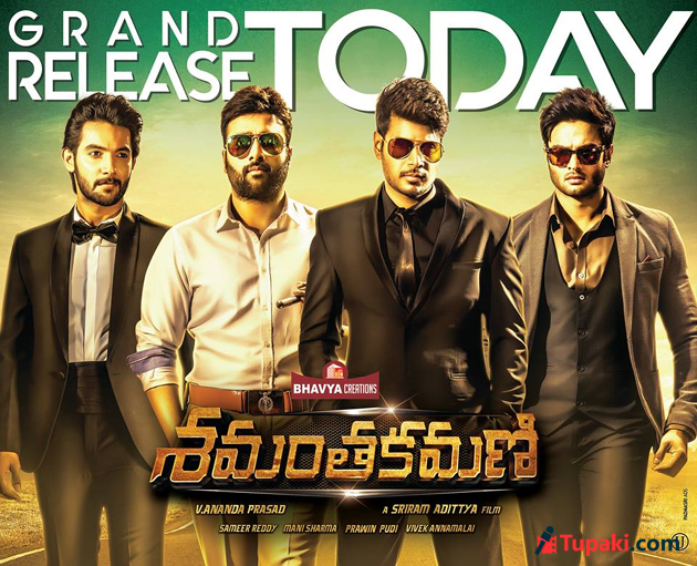 Krishna (Sudheer Babu) goes to party in a vintage car named 'Shamanthakamani' which was bought by his father in an auction for Rs 5 crore. This luxury vehicle goes missing by the time he steps out of party area. SI Ranjith Kumar (Nara Rohit) handles this missing case. He suspects the role of Krishna (Sudheer Babu), Siva (Sundeep Kishan), Karthik (Aadi), Umamaheswara Rao (Rajendra Prasad) in the theft & grills them one after the other. Watch 'Shamanthakamani' in theaters near you to find out who is the actual culprit!