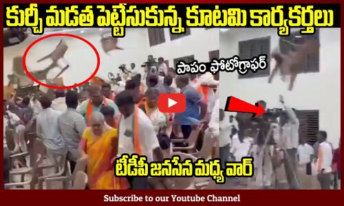 కుర్చీ మడత పెట్టేసుకున్న కూటమి కార్యకర్తలు : TDP, BJP, Janasena Leaders Fight Among Themselves